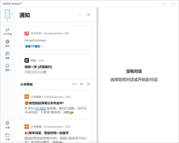 6、除了上述这些传统功能外,Intel Unison 的通知功能才是真正实现电脑协同的关键。系统通知与第三方通知都会实时同步到电脑上,即便一天不查看也不会产生焦虑感。若要使用该功能,记得在蓝牙设置里开启通知权限,并启用共享系统通知的选项。
