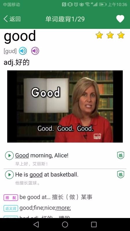 3. 里面配有十分可爱的人物图片,我们只需点击喇叭,就能听到单词的发音。