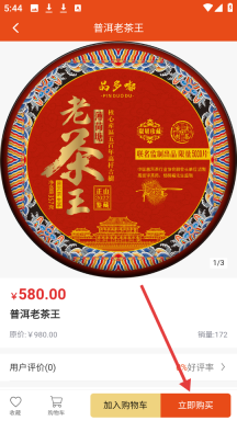 2、进入【普洱老茶王】的商品页面后,点击【立即购买】按钮就能快速下单选购该商品。