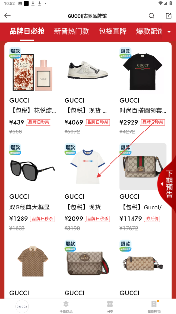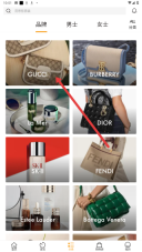 2. 在品牌展示区域,点击像【GUCCI】这样的目标品牌,进而查看该品牌的商品。
