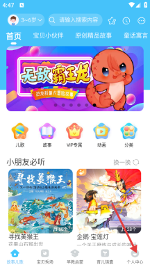 1、找到底部的功能栏,点击其中的【个人中心】选项,即可进入个人中心页面。
