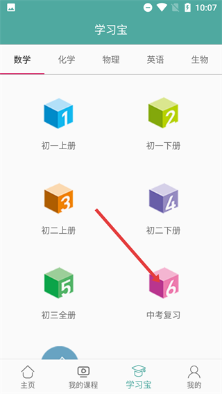 2、打开【学习宝】页面后,找到【数学】分类,从中选择【中考复习】模块,即可进入复习内容的选择界面。