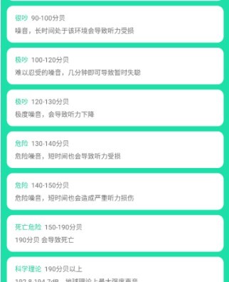 用户可以使用这款软件来检测生活中遇到的各种声音,查看声音当前在哪个分贝等级∨ 展开