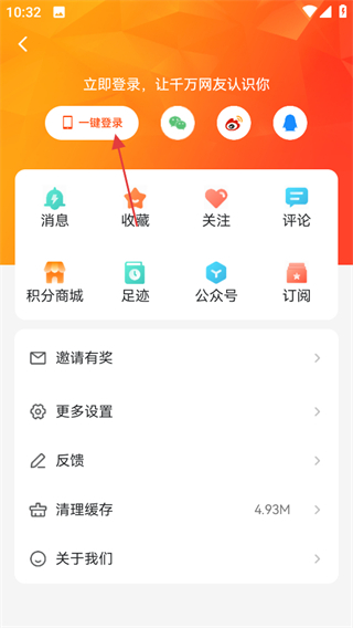 在个人中心页面,点击“一键登录”按钮即可跳转至手机号登录页面。