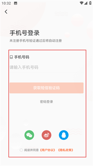 3、进入手机号登录页面,输入相关信息并同意协议后,即可完成登录操作。