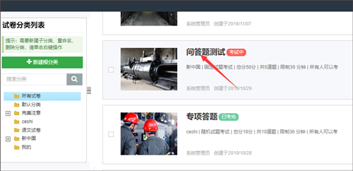 3、点击“试卷管理”进入对应的管理页面,在该页面中可开展试卷新建操作,也能进行试卷分类管理等相关功能操作。