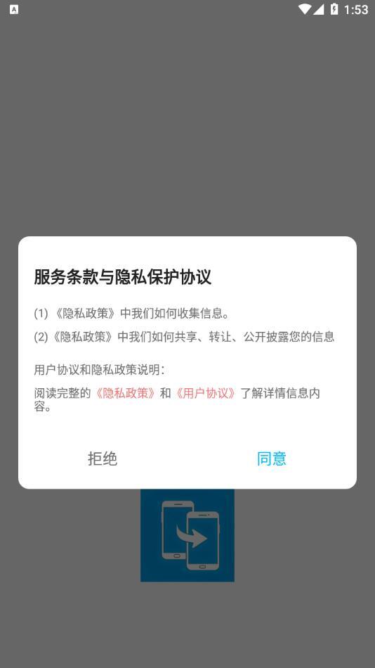 1、软件安装完成后启动,点击同意服务条款和隐私保护协议。
