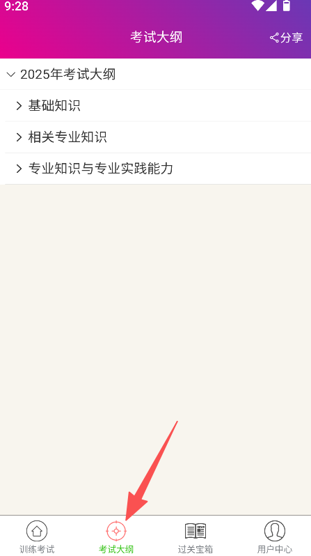 1、支持考试大纲的浏览功能,用户进入相应页面后,可展开各科目板块以查看具体的细分知识点内容。