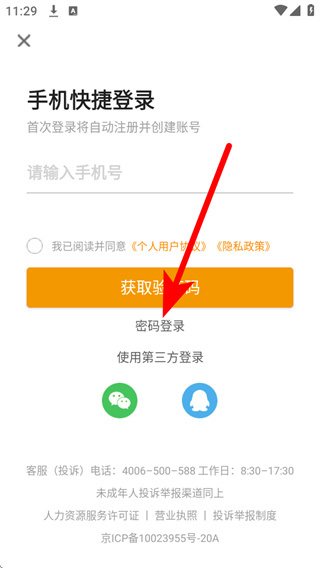 2、进入账号密码登录页面后,找到并点击“忘记密码”选项,即可跳转至找回密码页面。