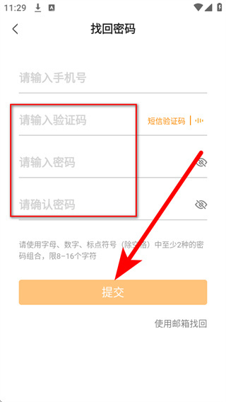 4、输入收到的验证码,设置新密码,之后就能用新密码登录账号了。
