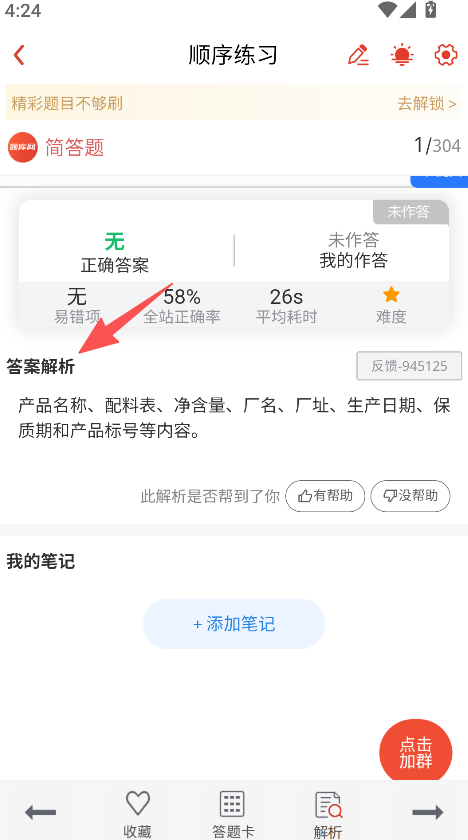 2、完成题目后,点击答案查看解析,学习知识点。