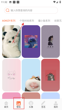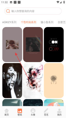1、点击壁纸选项,挑选个性时尚系列,进入该系列的壁纸页面。