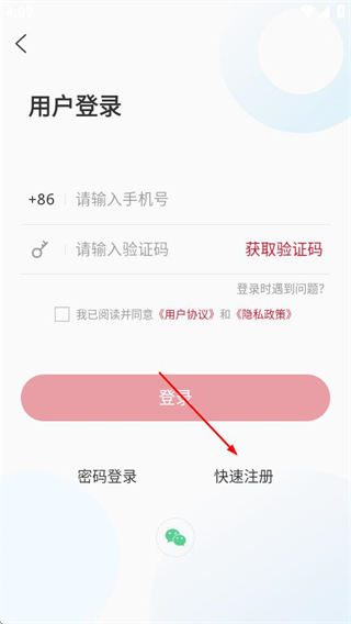 3、在用户登录页面,点击快速注册选项,就能进入用户注册页面。
