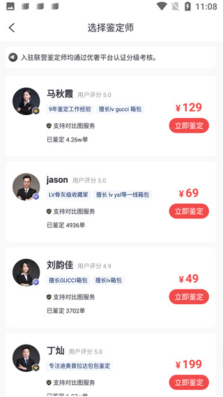 选择一个指定的鉴定师进入付款鉴定;