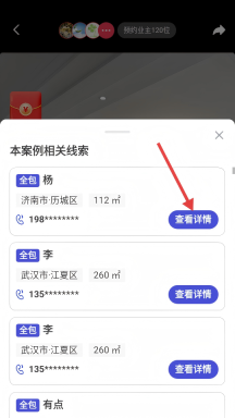 4、在客户线索列表里,定位到目标客户的相关条目后,点击该条目右侧的【查看详情】按钮,就能查看这位客户具体的装修需求详情了。