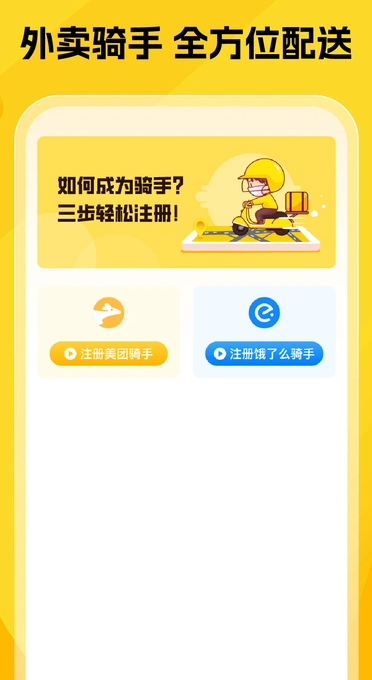 2、哪怕是第一次接触众包平台的骑手,也能顺利完成注册流程,迅速加入美东外卖配送的大家庭。