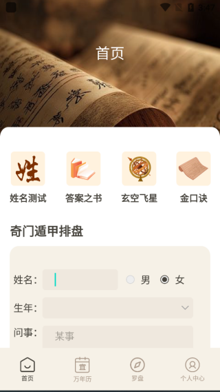 2、时间起卦:用户既能选择以往或未来的某个时间来排盘,也可直接采用当前时间进行排盘。