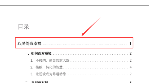 2、在目录页点击被框选的章节,进入内容。