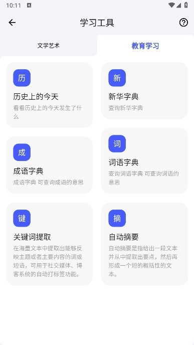 4、 进入学习功能页选择工具