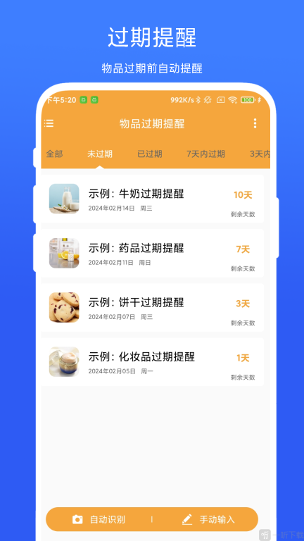 物品过期提醒亮点:
