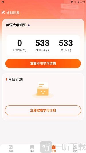 3. 在计划页面,你能够查看具体的计划内容,并且可以马上定制专属的学习计划。
