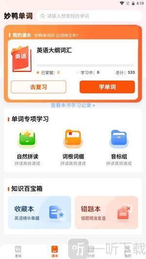妙鸭单词是一款既专业又高效的英语背单词应用,它不仅提供标准的英式与美式发音教学,还融入了自然拼读课程,并结合音节拆分记忆法,帮助用户摆脱死记硬背的困境——掌握自然拼读后,便能轻松实现“见词能读、听音能写”;此外,软件的单词库资源十分丰富,可满足不同人群的学习需求。