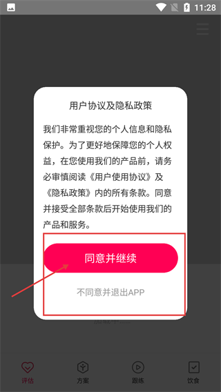 1、打开应用后会出现【用户协议及隐私政策】的弹窗提示,点击“同意”按钮就能进入应用的主界面。