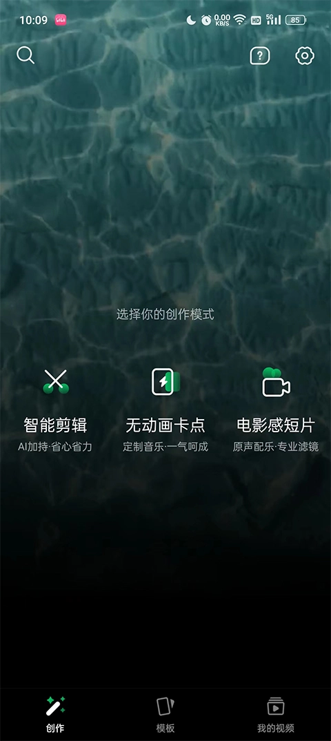 1、首先在本站下载并打开软件,进入首页,首页提供三种视频创作模式。
