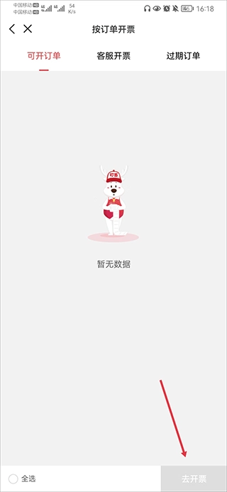 3、接着在可开订单里选择你需要开票的订单,点击“去开票”按钮就可以了。