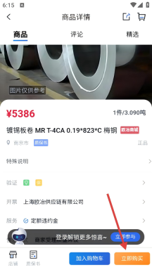 3、在商品页面点击【立即购买】按钮,系统会跳转至欧冶平台的账号登录界面,此时需准备进行身份验证。