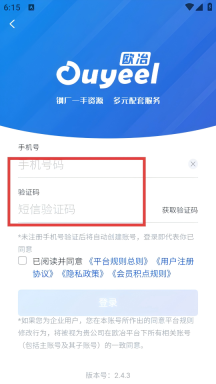 4、在登录页面填写【手机号码-验证码】,勾选相关协议后点击登录按钮,以推进钢材采购流程。