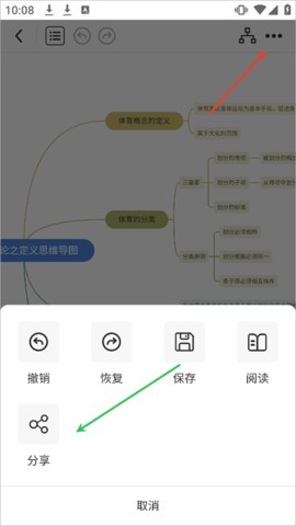 1、在树图思维导图中完成文件的编辑与保存后,点击界面右上角的扩展功能图标,待进入功能选项面板,从中选择“分享”选项即可。