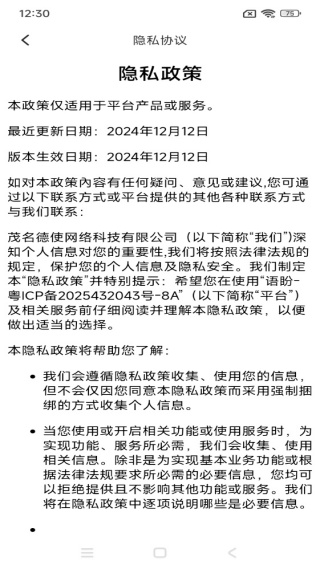 4、设有隐私政策专区,可查看平台的使用注意事项。