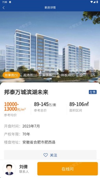 4、若您对哪个楼盘感兴趣,点击即可查看详情,还能进行在线咨询。