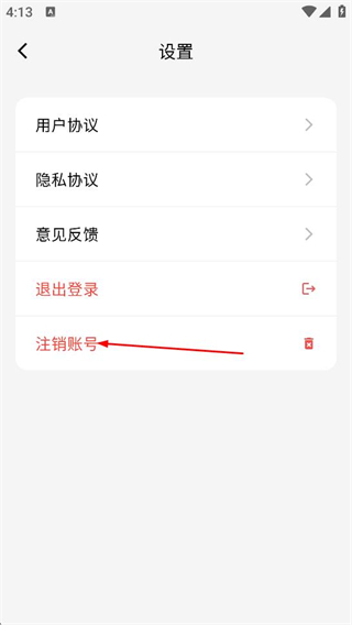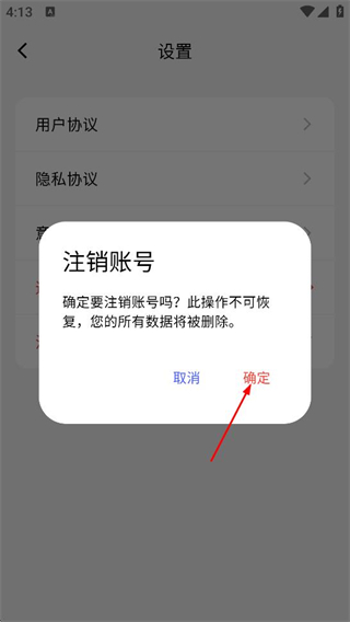 3、接着在设置页面里,点击注销账号的选项,触发确认的弹窗。