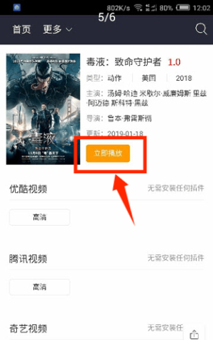 2、找到《毒液:致命守护者》等影片后,点击“立即播放”按钮即可开始观看。