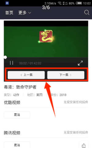 3、在播放界面通过上下集按钮,可以切换不同章节进行连续观看。