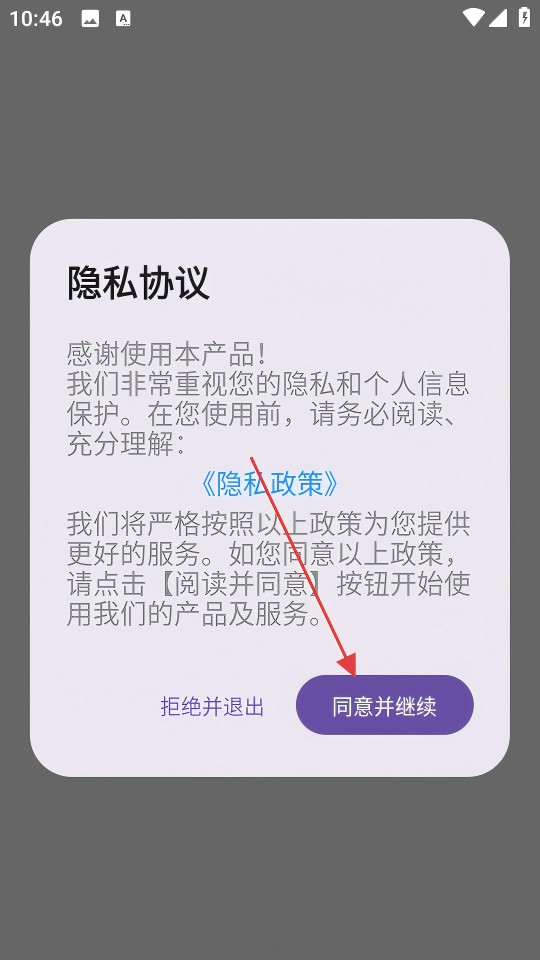 1、点击隐私协议页面的【同意并继续】按钮,即可进入主界面。