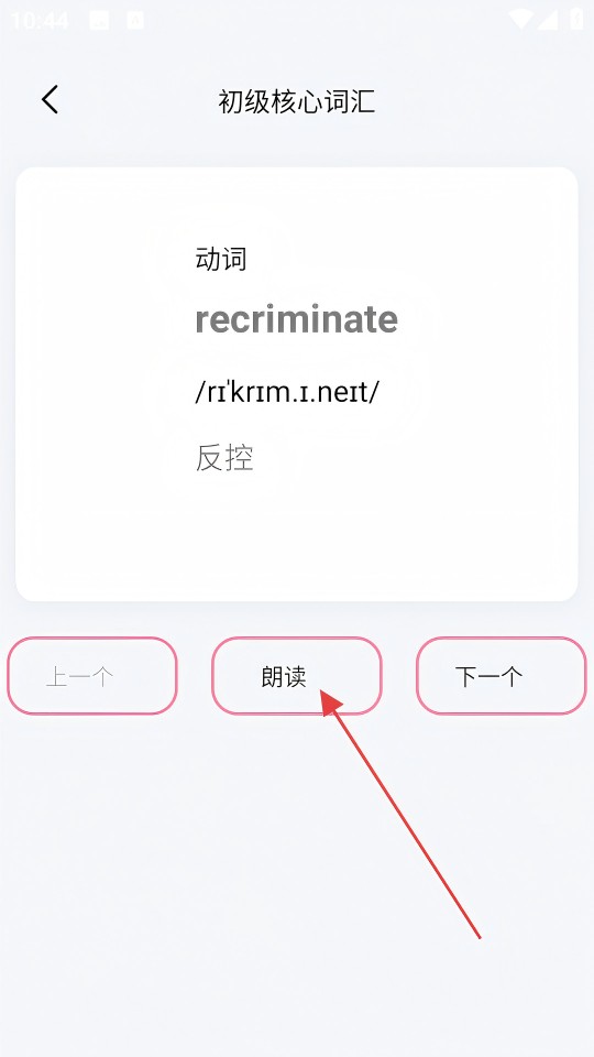 4、进入词汇学习页面后,点击【朗读】按钮,就能开展单词的朗读学习。