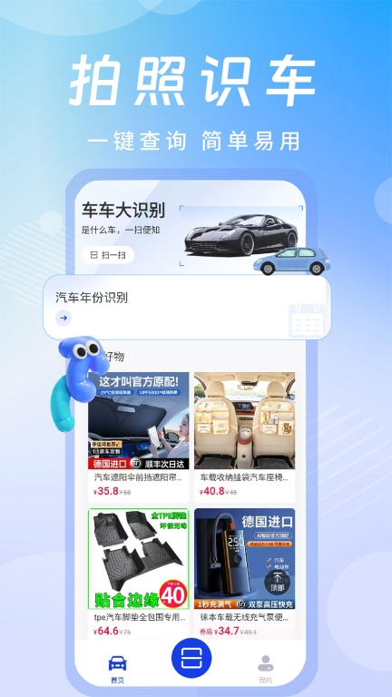 1、首页支持汽车年份识别与扫一扫功能,还提供各类汽车相关信息。