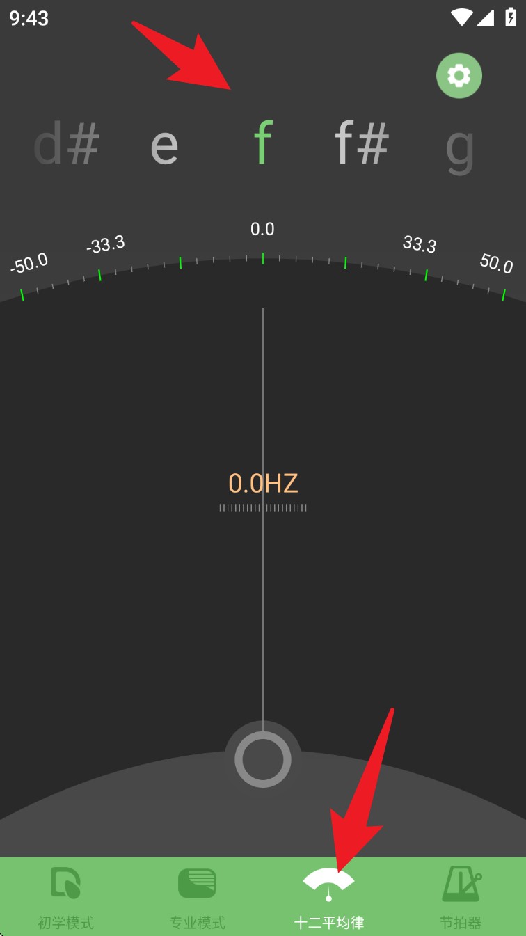4. 切换到“十二平均律”模式,就能查看精准的音高偏差情况,这一功能适合用于耳朵训练,或是进行更细致的调音操作。