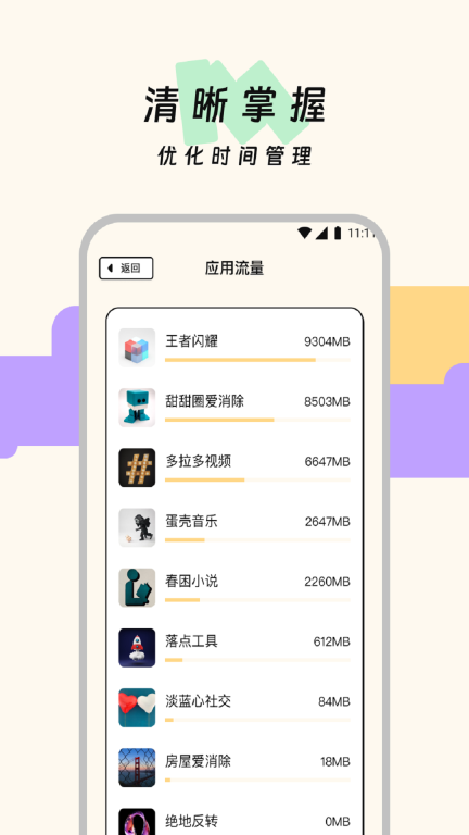 用户能够查看并管理各应用的流量使用状况,还可以对部分应用的后台流量使用进行限制。
