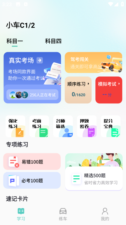 2、配备了丰富多样的科目一与科目四精选题库,题目紧密贴合考试大纲,全面覆盖各类关键知识点;