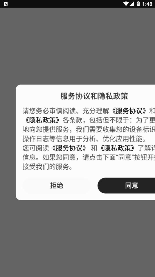 1、安装软件后打开,点击同意服务协议和隐私政策。