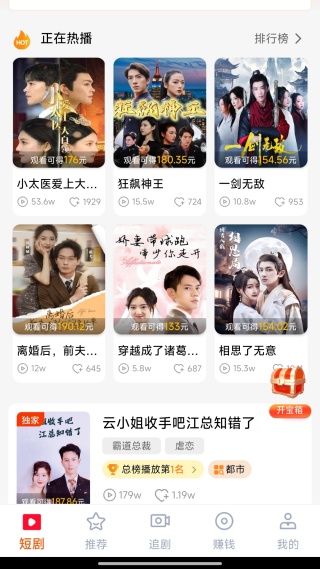 1、平台整合了都市情感、悬疑推理、古风穿越等各类短剧资源,每天都会更新热门剧集和具有潜力的新作品,致力于构建一个内容丰富的短剧片库。