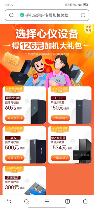 6、新用户首次绑定设备,能拿到最高6元的奖励;要是绑定更多设备(也就是加机),还可以获得加机大礼包、收益加成卡之类的奖励。