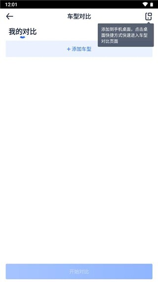 3、这样就打开了【车型对比】界面,点击下方的【添加】按钮。