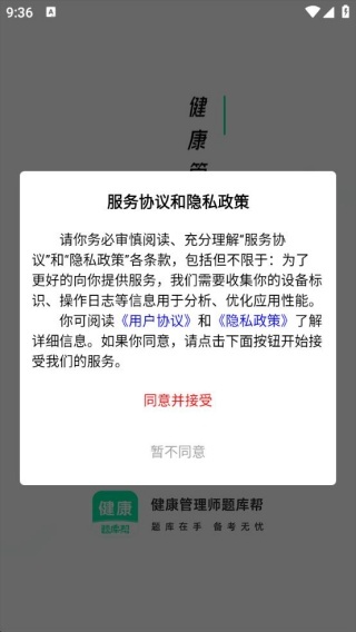 1、软件安装完成后打开,会弹出服务协议与隐私政策,点击同意即可。