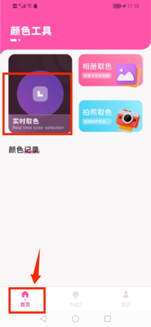 3、进入首页后,选择实时取色或相册取色功能,就能启动色彩识别操作了。