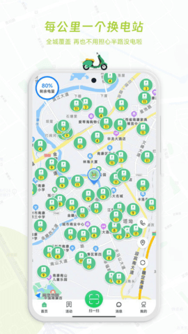 1、地图导航功能可展示电器柜的分布情况与电量状态,助力用户迅速定位到距离最近的换电站。